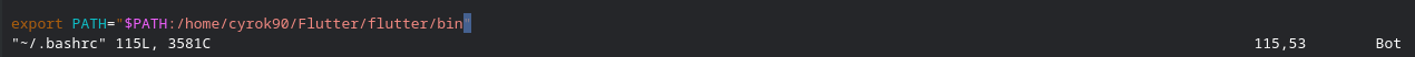 export PATH="$PATH:/[YOUR PATH]/flutter/bin"