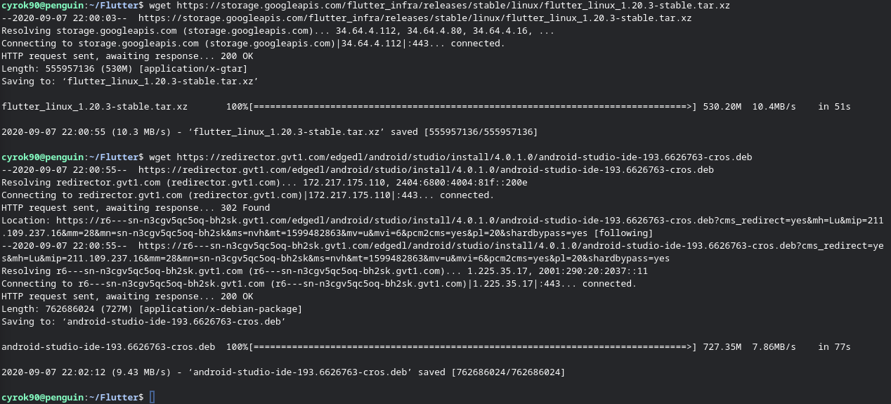 wget https://storage.googleapis.com/flutter_infra/releases/stable/linux/flutter_linux_1.20.3-stable.tar.xz
