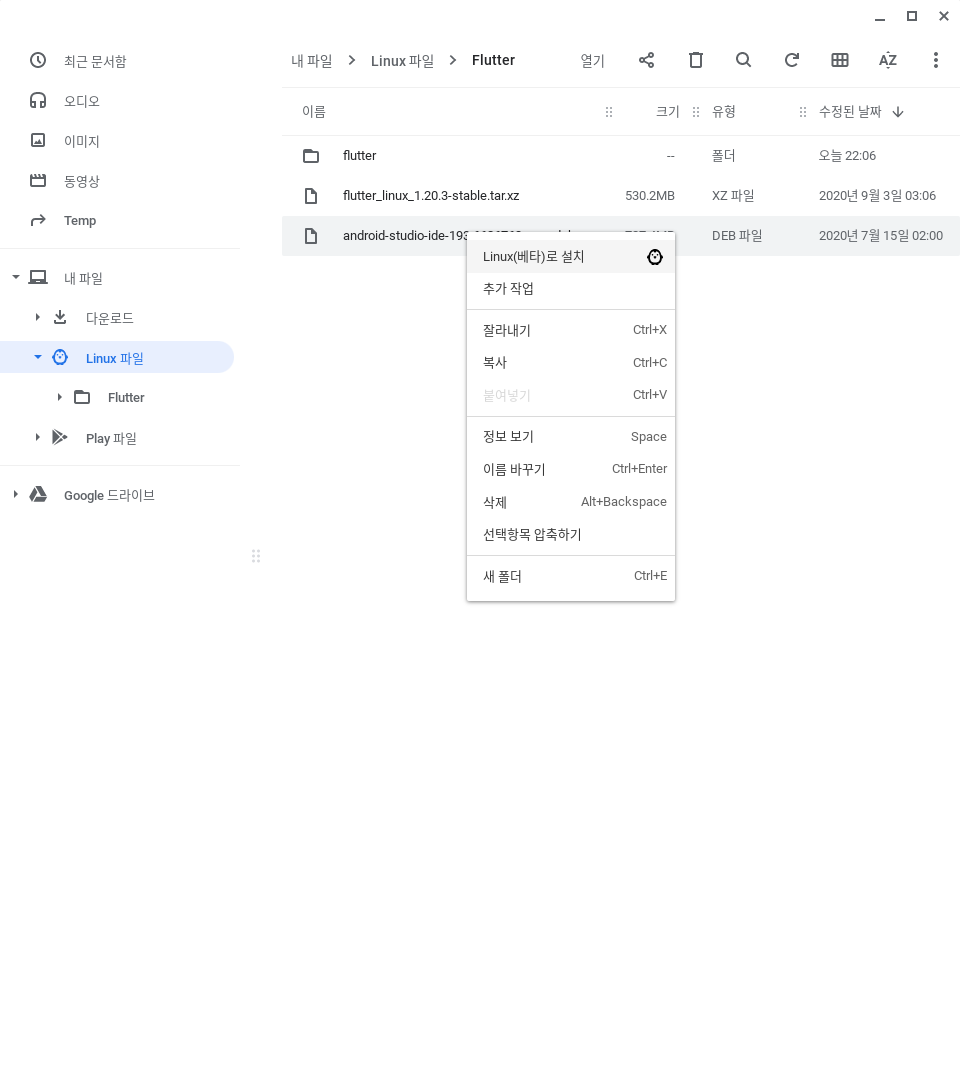 - Flutter SDK : https://flutter.dev/docs/get-started/install/chromeos